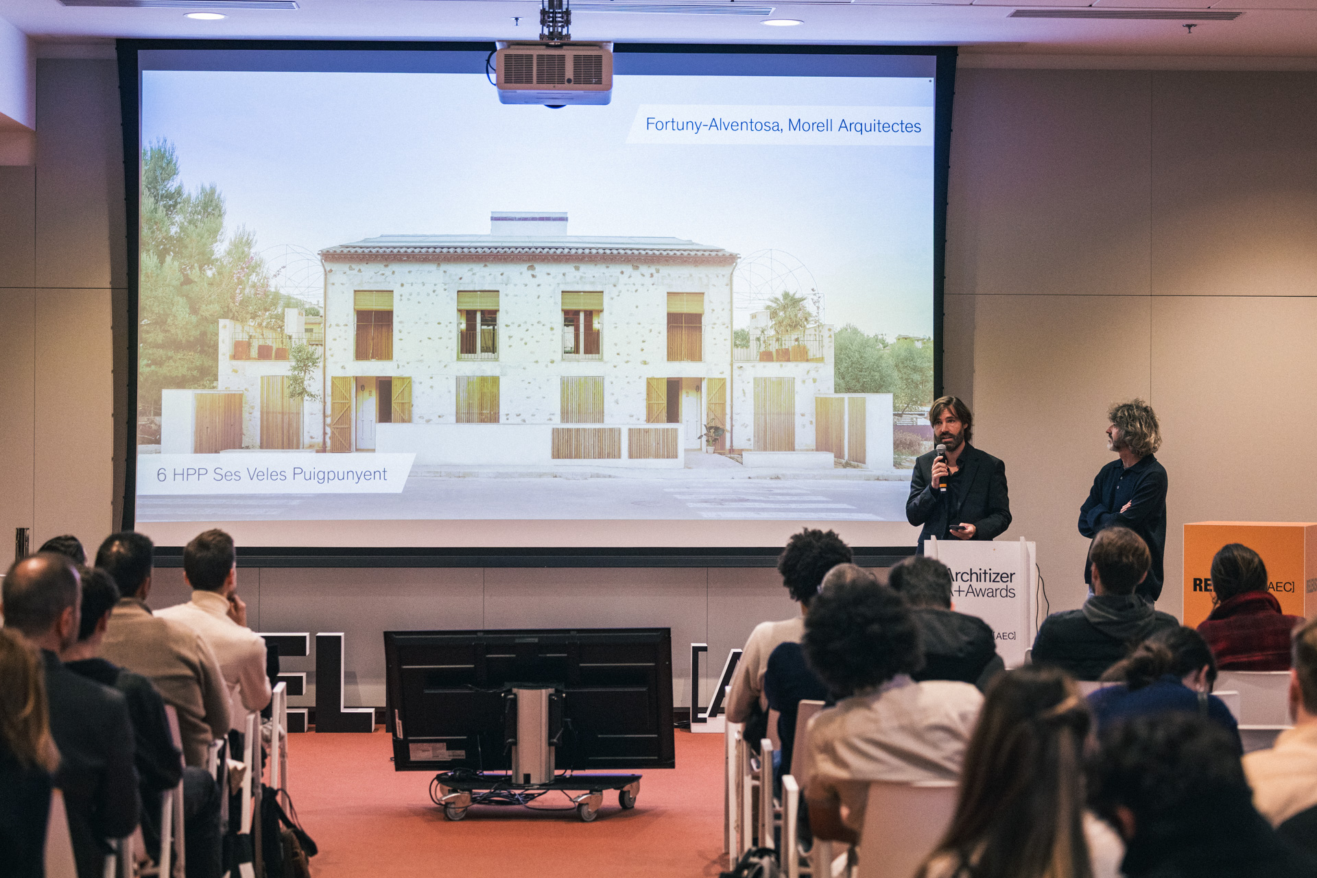 El primer Premio Proyecto del Año recayó en Marc Solsona, Banco Europeo de Materialesquien presentó 6 CH Ses Veles Puigpunyent pasar a través Fortuny Alventosa Morel Arquitectos. Un complejo de viviendas públicas de seis unidades en Mallorca revive los métodos de construcción tradicionales mediterráneos (cal, piedra, cerámica y madera) para lograr un uso energético casi nulo y una arquitectura profundamente arraigada en el área local.
