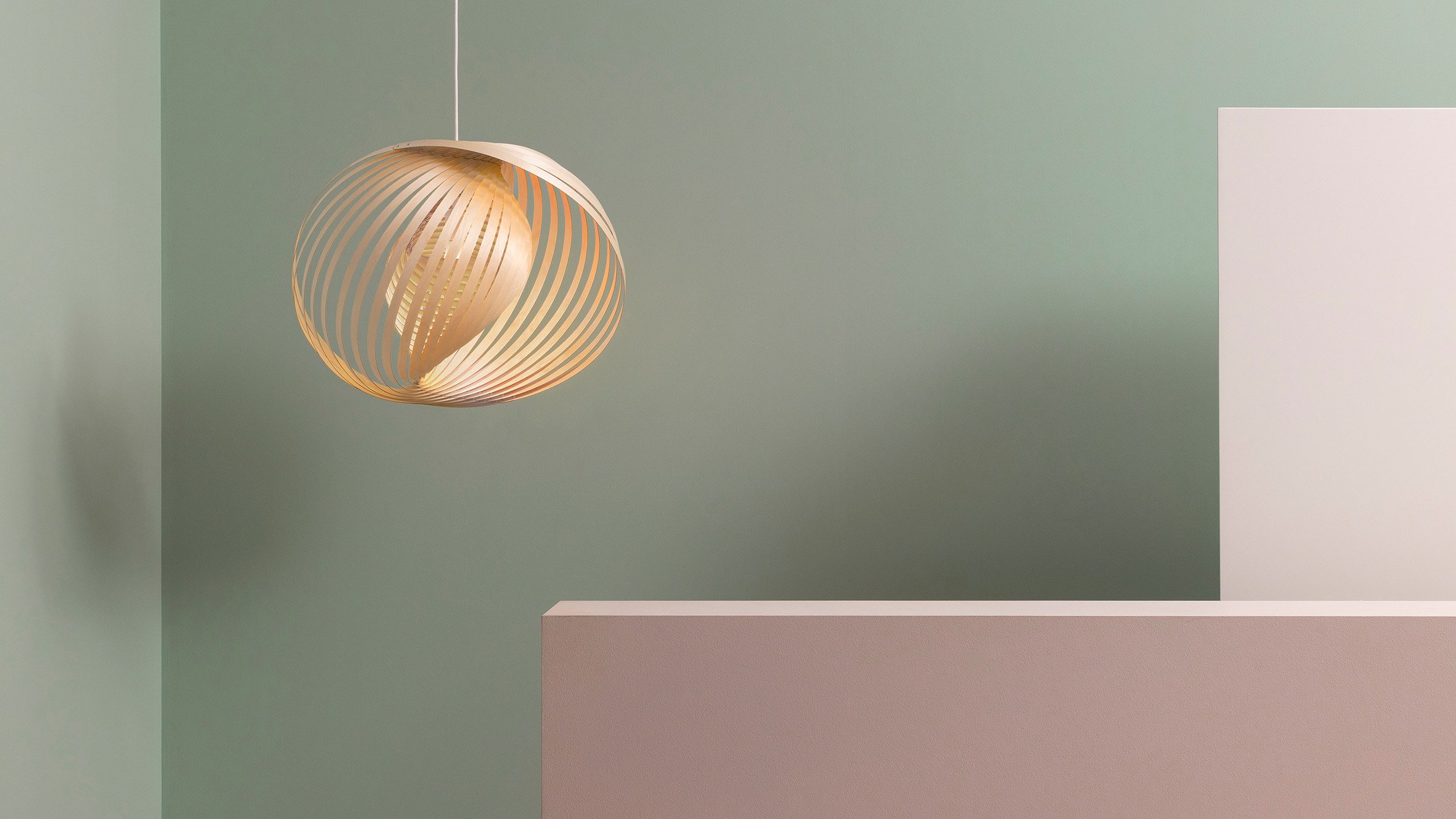 Las lámparas Adilo están disponibles en dos tamaños y están fabricadas con madera obtenida de forma responsable en Heinola, Finlandia, y están certificadas por el Sistema de Reconocimiento de Certificación Forestal.
