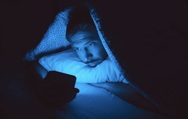 Una mano sostiene un monitor que muestra una imagen térmica de una mujer inclinando la cabeza, mostrando diferentes niveles de calor en colores brillantes de rojo, amarillo y verde, con un punto caliente circular brillante detrás de ella.
