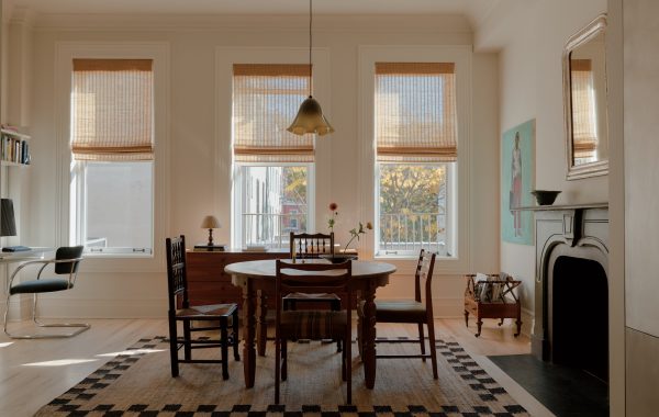 La escala de la finca se puede sentir desde las vistas panorámicas de los bloques de terrazas que se elevan sobre el espacio verde central. Los estrechos balcones rodean la larga fachada y están llenos de flores rojas, plantas en macetas y artículos cotidianos de los residentes. Abajo, zonas de picnic y un pequeño parque infantil suavizan la geometría, revelando la intención original de los arquitectos de combinar viviendas de alta densidad con generosos espacios públicos. Detrás de la disposición horizontal de los apartamentos, la clara verticalidad del nuevo edificio de oficinas recuerda a los espectadores el papel de la finca como enclave cultural integrado en el corazón comercial de la ciudad.