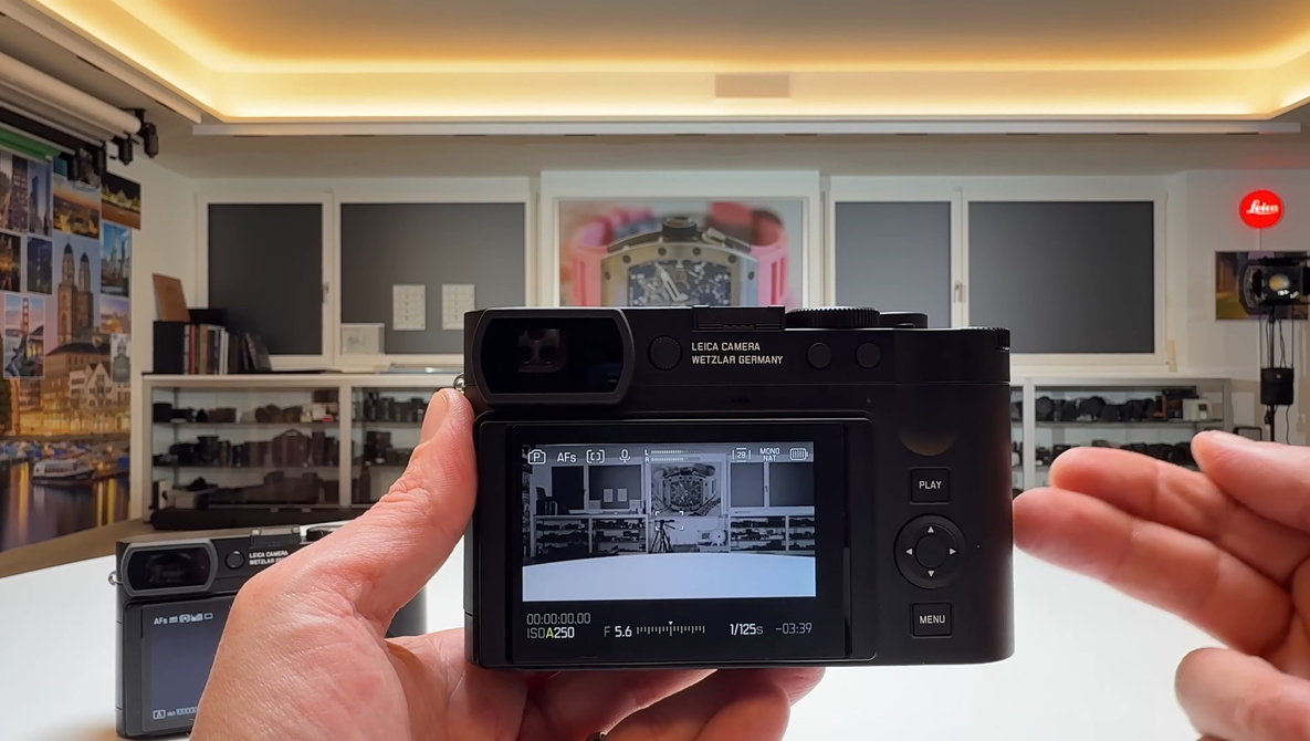A partir de ahí, el vídeo pasa rápidamente a lo que realmente diferencia a esta cámara de la Q3 estándar: un sensor monocromático dedicado con el triple de resolución y sin filtro óptico de paso bajo. Verá cómo Leica presenta las opciones de 60, 36 y 18 megapíxeles de manera diferente en el menú, usando combinaciones LDNG, MDNG y SDNG que pueden resultar confusas hasta que alguien lo guía a través de ellas en la pantalla. Este vídeo muestra el rango ISO hasta 200.000 y explica por qué los sensores monocromáticos manejan el ruido de manera diferente, especialmente cuando estás en un concierto o trabajando en la calle de noche. También hay una explicación útil del sistema AF con detección de contraste, por qué la detección de fase no está disponible aquí y cómo Leica confía en el llamado AI AF para mantener la detección del sujeto receptiva.