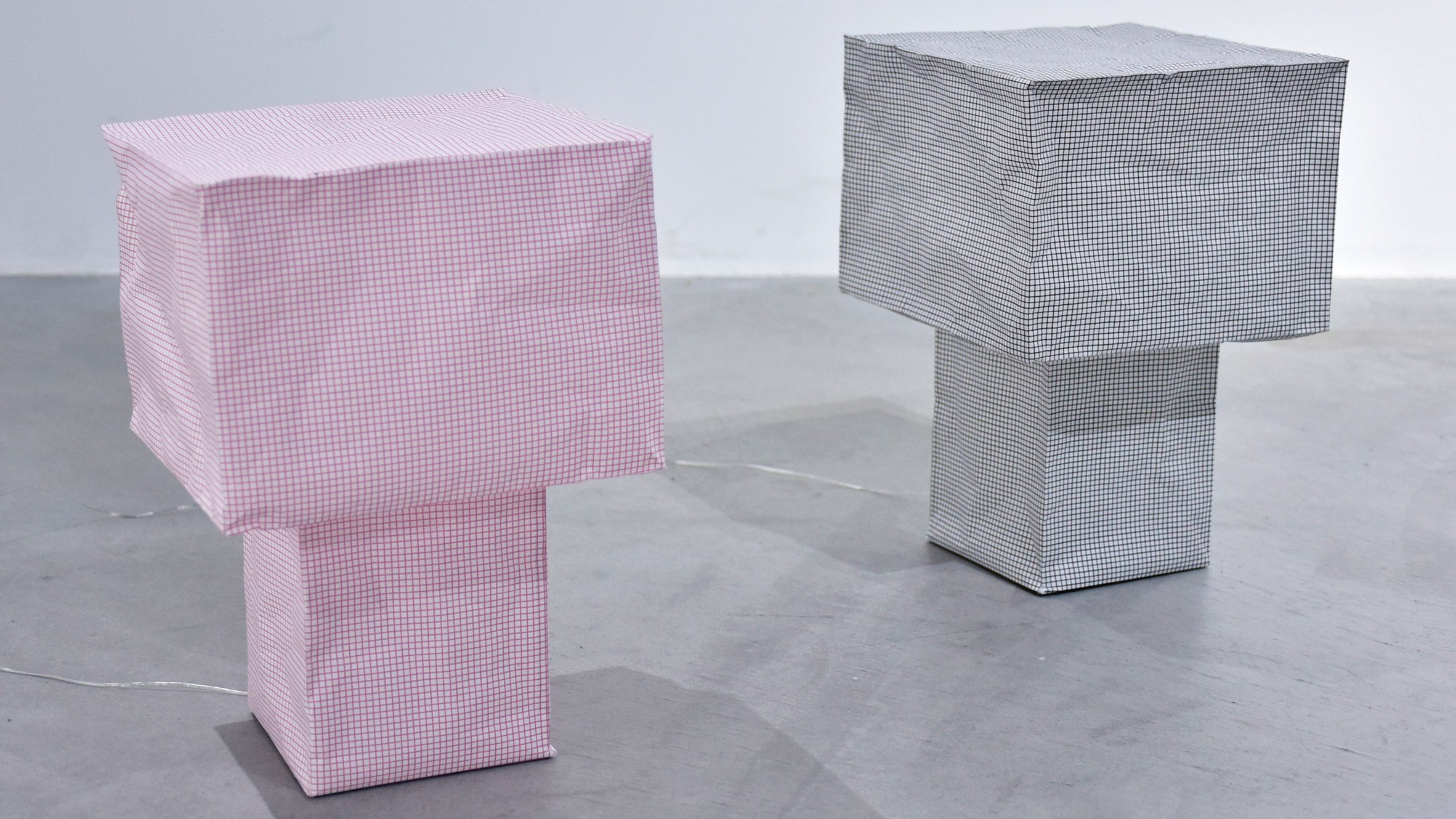 Las lámparas están hechas de papel blanco o con estampado de cuadrícula.