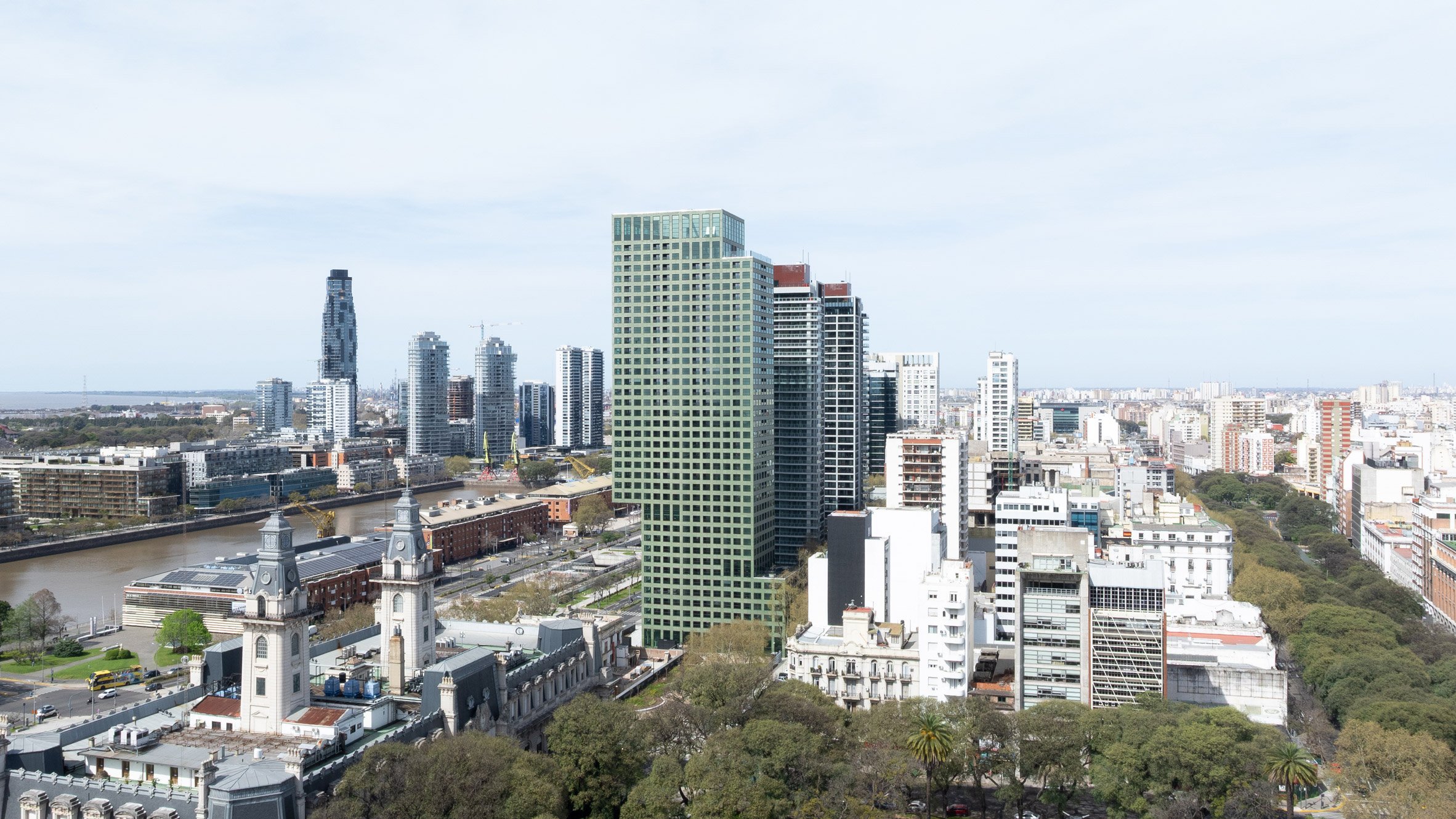 El rascacielos residencial Huergo 475 tiene 120,6 metros de altura, 39 plantas y 507 apartamentos. Se ubica al noreste de Buenos Aires, entre un denso paisaje urbano y una reserva biológica.
