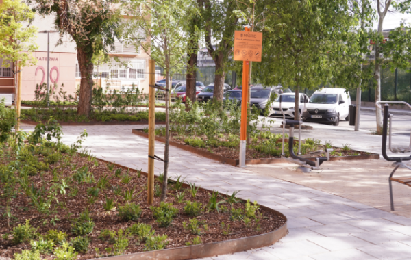 Para mejorar la sensación de verdor que rodea la ampliación, el estudio también plantó nuevos árboles frutales en el jardín e insertó parches de plantación entre los adoquines recuperados del suelo de la terraza.