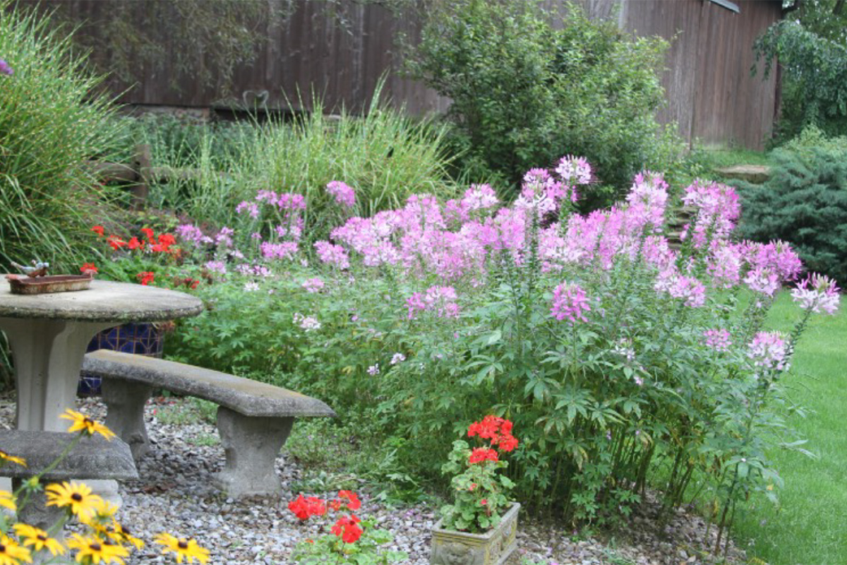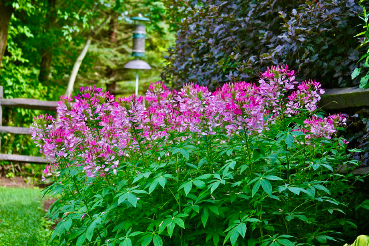 De las más de 100 plantas, vegetales, arbustos y árboles de la propiedad, mi planta favorita es obviamente la planta araña. (flores de colza Sinónimos. flor haslerDistritos 9-11 o anualmente). Estas plantas anuales, que florecen desde principios del verano hasta finales del otoño, son resistentes a los ataques de ciervos y conejos, y son amadas por las abejas, las mariposas y los pájaros más pequeños del jardín.