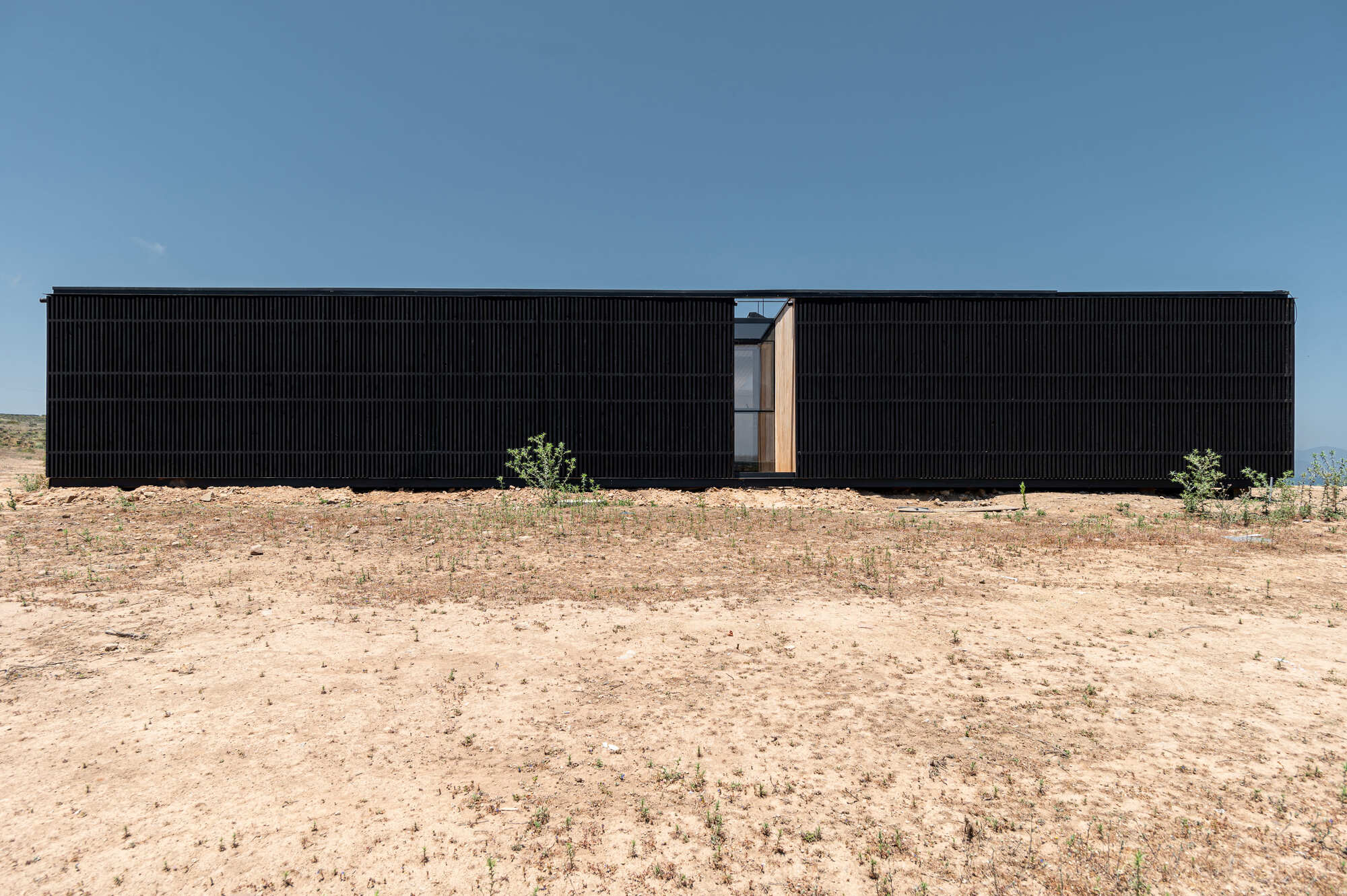 Se espera que el diseño exterior de esta casa esté en Piso de pino de 1×8″ pintado de negrocombinado con un enrejado del mismo color, le da a la casa una condición cerrada desde el exterior y se integra en el paisaje local.