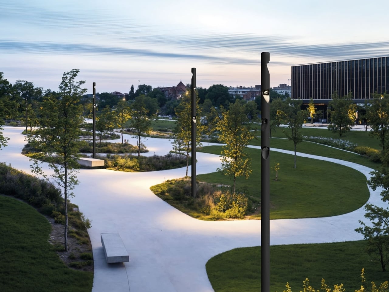 Las especificaciones técnicas también son sólidas. Con una clasificación IP66 y resistencia al impacto IK10, el poste puede soportar cualquier clima o vandalismo. La iluminación LED cuenta con atenuación DALI 2, lo que significa que las ciudades pueden ajustar fácilmente los niveles de brillo según la hora del día o las necesidades específicas. Por ejemplo, a altas horas de la noche, las luces pueden atenuarse para ahorrar energía, pero se iluminan cuando se detecta movimiento.