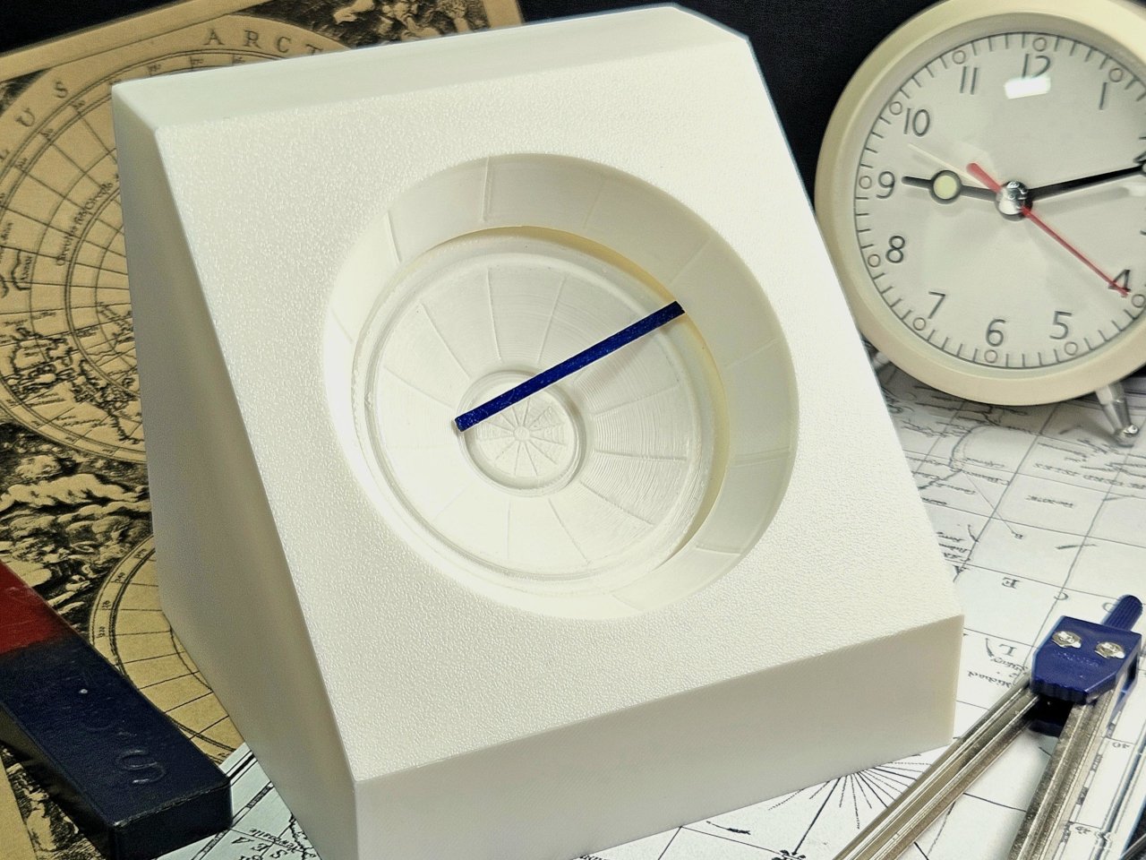 Trace Line Clock es un reloj de escritorio minimalista impreso en 3D diseñado por Hye-jin Park que utiliza una manecilla continua para mostrar horas y minutos. El extremo interior de la línea rodea el anillo interior para indicar las horas, mientras que el extremo exterior rodea el anillo exterior para indicar los minutos. Con el tiempo, los ángulos y longitudes de las líneas cambian, de modo que cada mirada revela una nueva relación geométrica entre las dos.