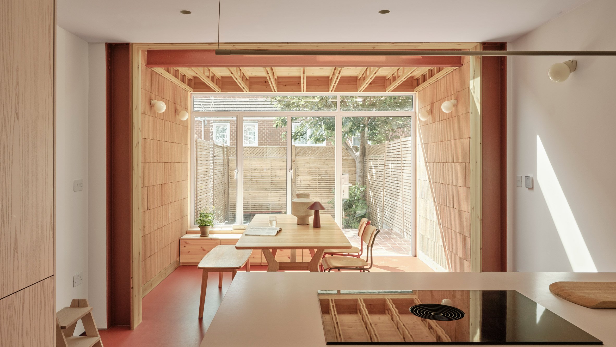 Muros de ampliación de una casa adosada del norte de la posguerra Londres Hecho de entrelazado arcilla Bloquear empresas locales este estudio Si se deja expuesto, crea un efecto cálido y texturizado.