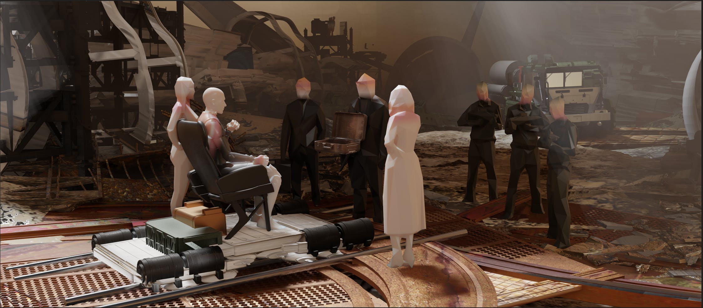 Cuenta la historia de un habitante de un refugio subterráneo al que una organización militar se acerca para intercambiar.