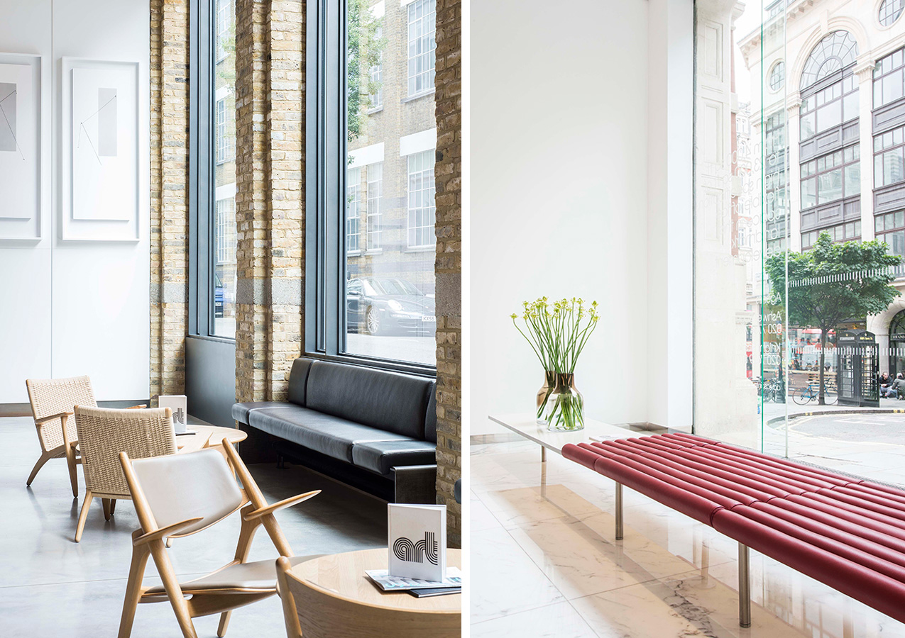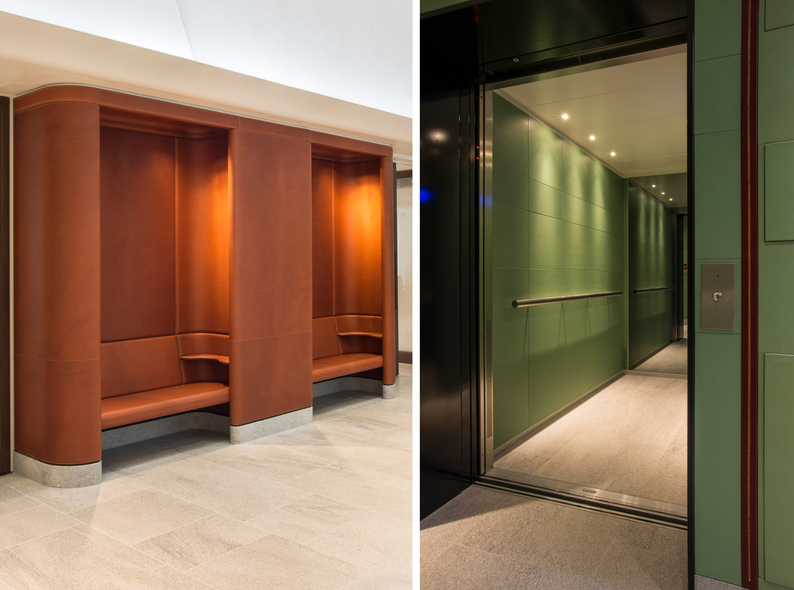 banco de cuero Estudio Bill Amberg 80 Charlotte Street, diseñado por MAKE Architects para Derwent London | Fotografía de David Cleveland