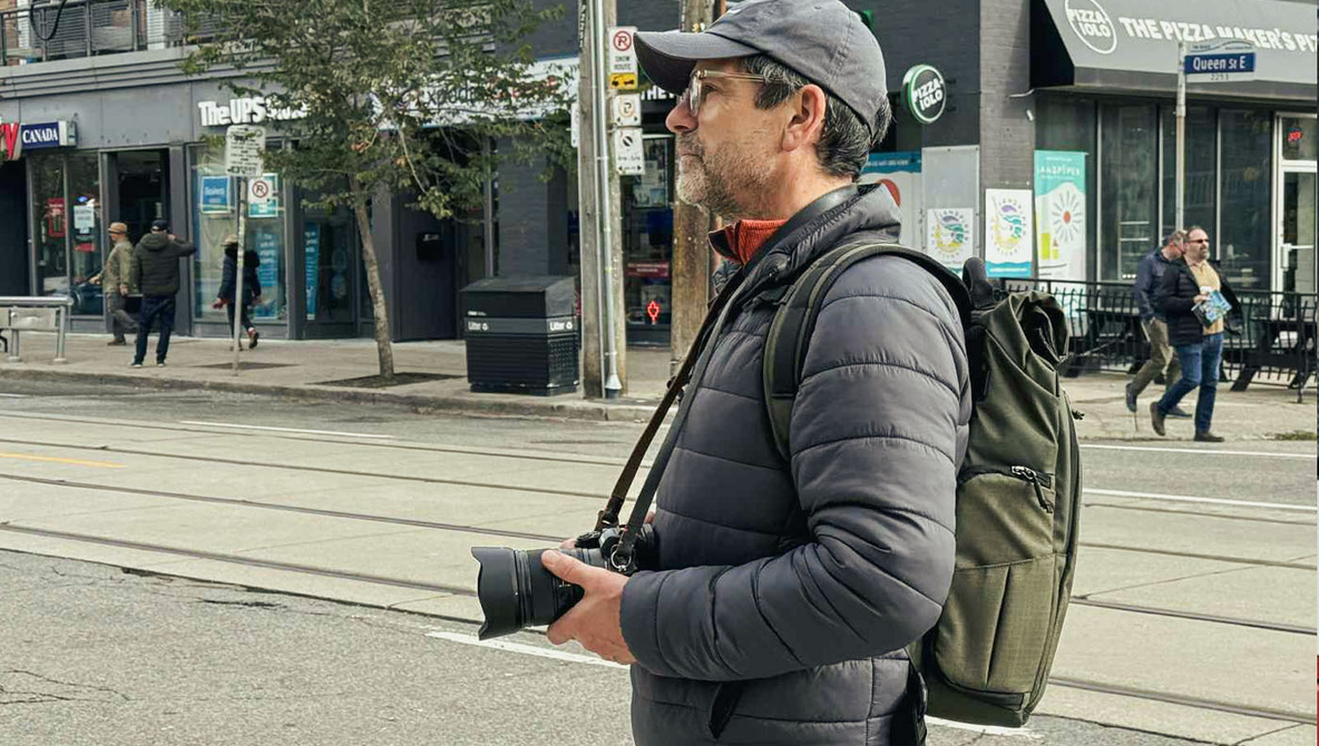Con la mayor frecuencia posible viajo a la ciudad y paso un día haciendo fotografía callejera. El FocusPoint de 22L me permite llevar una Nikon Z50 y dos lentes, así como una GoPro y un kit de micrófono inalámbrico para vlogging. También guardo una batería de repuesto y tengo espacio para un pequeño flash o luz LED.