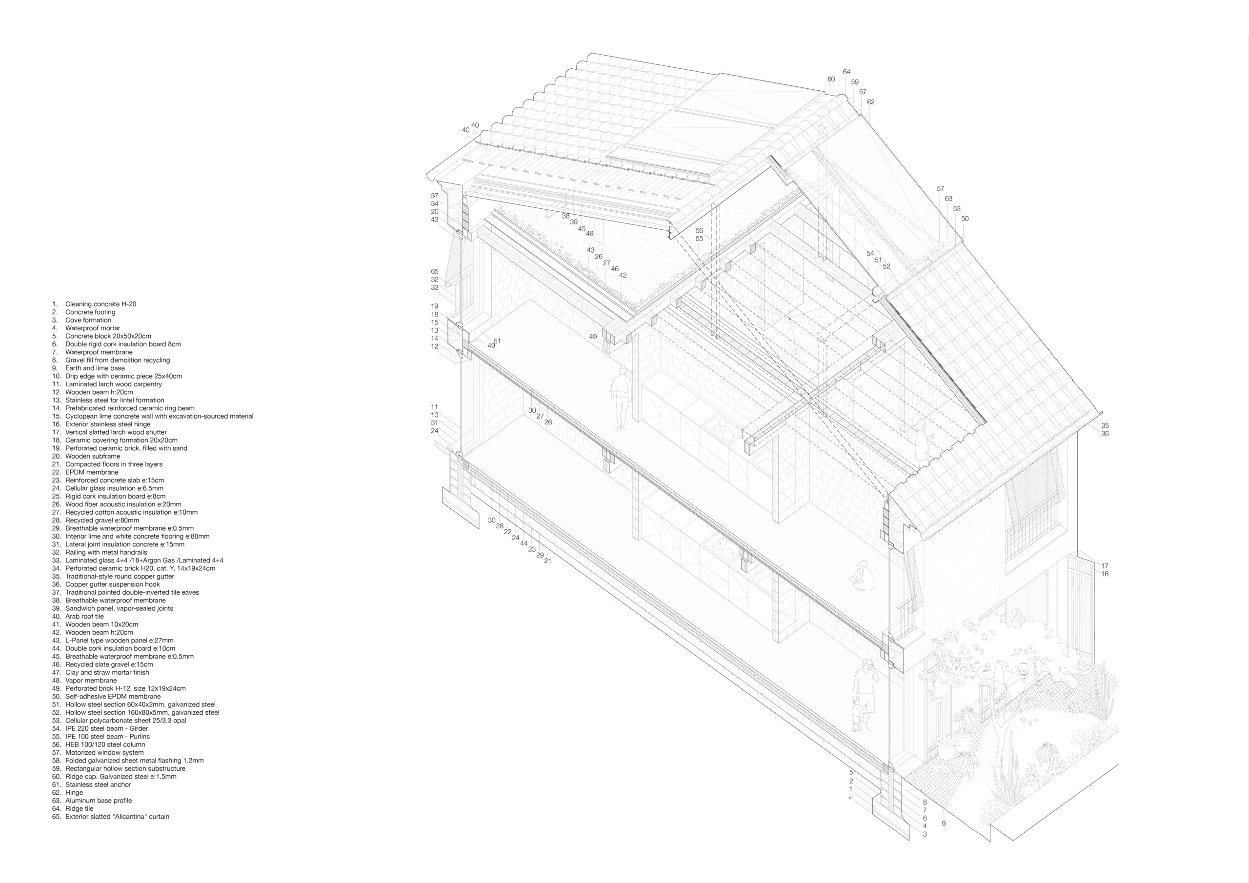 Combinado con protección solar, suelos y paredes de alta inercia térmica y humedad que regula la absorción de humedad, el consumo de electricidad es muy bajo: 1,7 kWh/m2 por año. La clave para regular las temperaturas, limitando así la necesidad de sistemas activos que consuman mucha energía, es agregar inteligentemente techo trompetaayudando a retener el calor en el invierno y al mismo tiempo proporcionando ventilación vital durante los calurosos meses de verano.