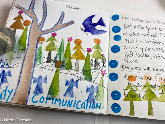 Mi tema parece ser árboles, pájaros, rostros, flores y casas similares. Llevo unos años haciendo pequeños cuadernos de bocetos de forma regular. Es muy emocionante mirar atrás unos años y ver en qué estaba trabajando y ponerlo de alguna forma en mi último cuaderno de bocetos.
