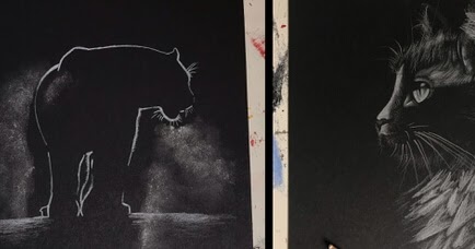 En cambio, el primer cuadro hace algo parecido, pero de forma diferente. Dibujando la silueta del animal, el vapor que emana del gran felino se suma a su presencia física. El resto de los dibujos muestran variaciones de estos conceptos con hermosos y buenos efectos.