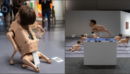 Elon Musk y Mark Zuckerberg juegan a perros robot en Beeple Art Basel