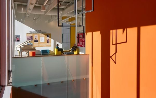 Las ventanas perforadas profundas brindan vistas precisas hacia el exterior. Su disposición permite que la luz entre por proyección en lugar de difusión, enfatizando la orientación de la estructura. Los aleros curvos de hormigón profundizan esta interpretación, profundizando las sombras e intensificando los cambios entre las direcciones cardinales a medida que uno se mueve alrededor del perímetro.