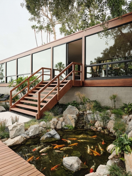 Se agregó una nueva piscina de concreto y una terraza adjunta con fogata al estanque koi y al patio existentes para mejorar la vida al aire libre.