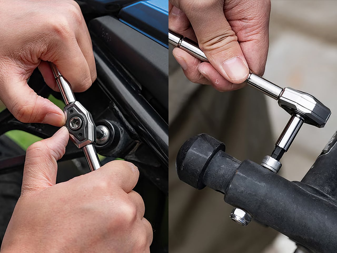 El sistema modular permite adaptar el mismo núcleo a tareas muy diferentes. Coloque la extensión en el puerto lateral y se convertirá en un mango en forma de T para un máximo apalancamiento, permitiendo que las manos y la parte superior del cuerpo compartan la carga. Vuelva a configurarlo en forma de L para trabajar alrededor de soportes de chasis o paredes, o manténgalo en forma de I delgada cuando necesite alcanzar aberturas estrechas.
