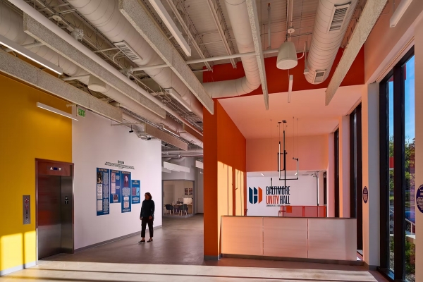 El interior renovado presenta nuevos tragaluces y aberturas de ventanas colocadas en todo el edificio, lo que permite que la luz natural llegue al 90 % de las áreas de uso común y reduce la dependencia de la iluminación artificial en un 25 %.