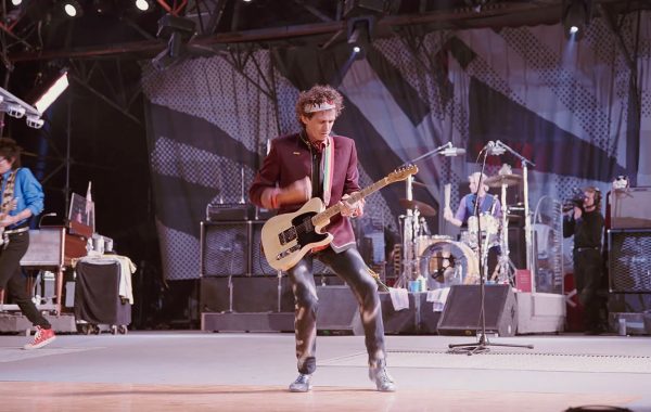 Una guitarra frente a una puerta en Simple Addition de OEB Architects
