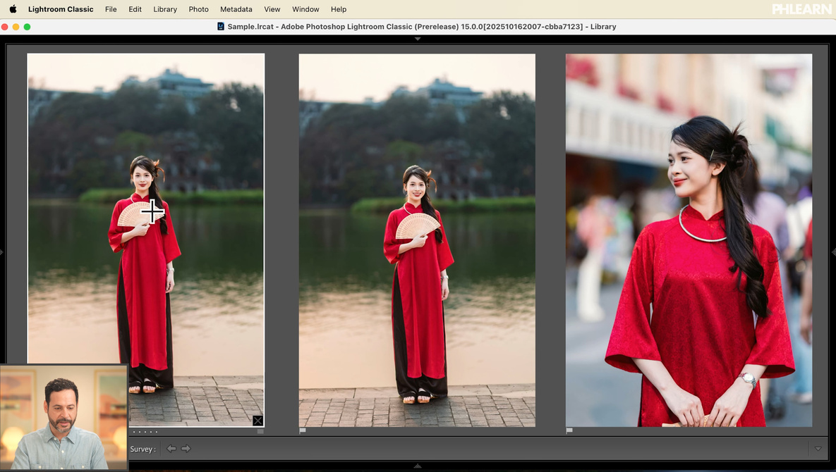 El vídeo también explica cómo la IA puede encontrar tu contenido favorito una vez que ha hecho su trabajo. Nace Abra la barra de filtro de galería, cambie a la sección Propiedades y filtre por indicadores para que solo se muestren las imágenes seleccionadas o rechazadas cuando tome su decisión. Luego usó Survey View para comparar un pequeño conjunto de retratos similares uno al lado del otro, eliminando los fotogramas más débiles uno por uno hasta que solo quedó un favorito, y asignó una calificación de cinco estrellas a la selección final. Los atajos de teclado como N para la vista de encuesta, barra diagonal para la barra de filtro y teclas numéricas para calificaciones ayudan a acelerar el proceso sin parecer complicado. Incluso puede ver cómo este paso de selección se conecta con las herramientas de enmascaramiento, eliminación de ruido, desenfoque de lente y color impulsadas por IA en Lightroom Classic y Photoshop más adelante en su edición. Mire el vídeo de arriba para ver el resumen completo de Nace.