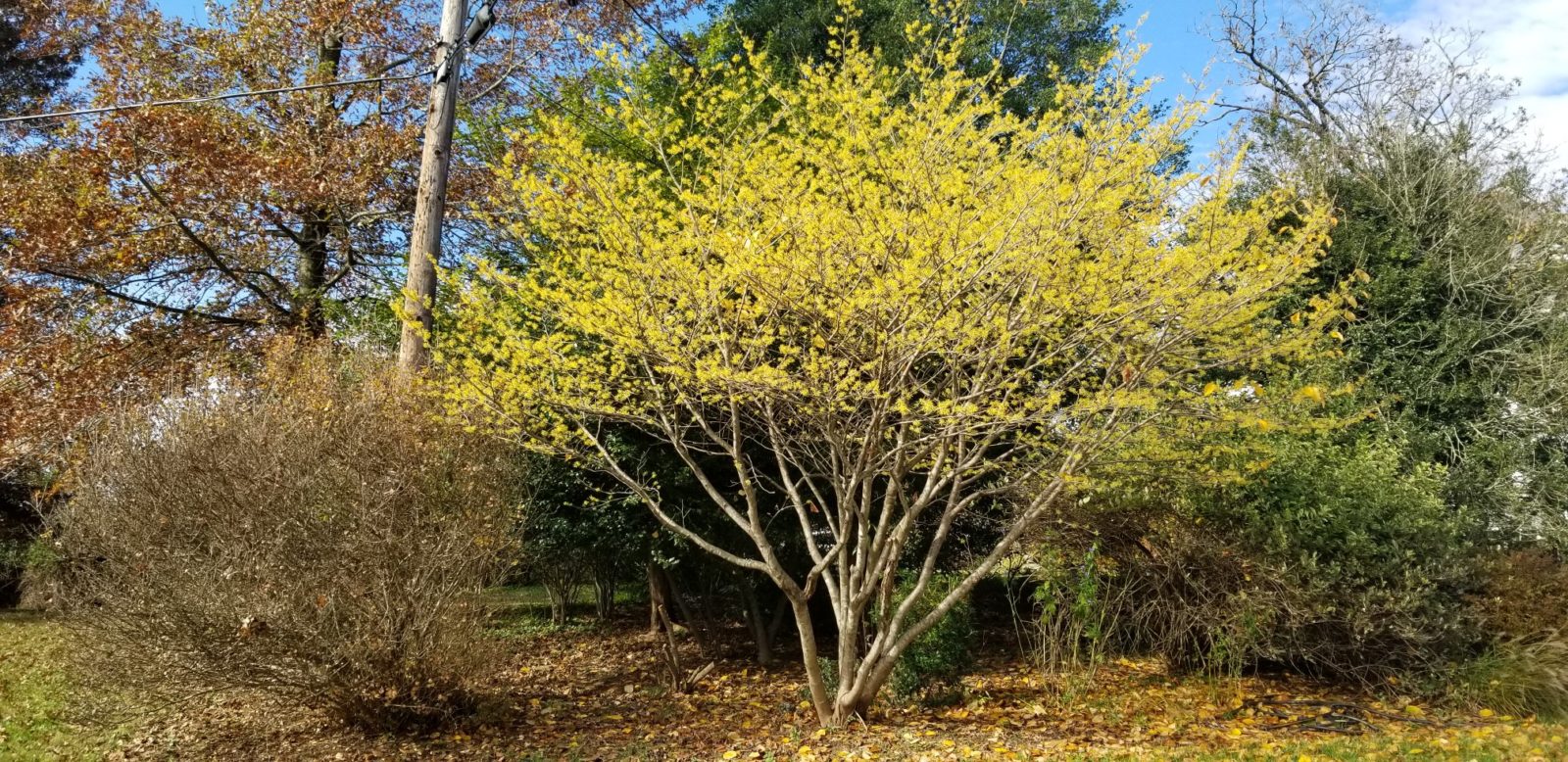 hamamelis Es uno de los pocos arbustos que florece a finales de otoño. Sus flores amarillas en forma de cinta aparecen cuando las hojas caen, proporcionando una rara muestra de color cuando la mayoría de las otras plantas permanecen inactivas. El hamamelis crece bien en bosques y jardines parcialmente sombreados y apoya a los polinizadores tardíos.