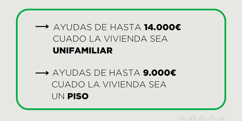 El plan destinará hasta el 50% del presupuesto a obras de rehabilitación, aumentando hasta el 70% para jóvenes menores de 35 años, familias numerosas, hogares monoparentales o colectivos vulnerables. El importe máximo de la ayuda es de 14.000 € para una vivienda unifamiliar y de 9.000 € para un apartamento.