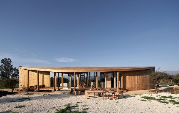 Implantado en el suelo para convivir con el espacio exterior. – La posición y orientación de los árboles son dos prerrequisitos importantes a la hora de diseñar la casa y su posición en el terreno, tanto el interior como el exterior de la casa están realizados en madera para lograr una completa integración de la casa con su entorno. En el exterior se utilizan tableros de pino impregnado y en el interior resina fenólica de guartambu para pisos, paredes, techos, espacios de almacenamiento y cocina.
