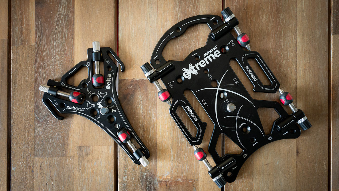 Tres de las patas de Delta giran hasta colocarse en su lugar. Solo están disponibles en un ángulo, pero se pueden desatornillar y mover a cualquier orificio disponible de 1/4″-20. El eXtreme tiene cuatro patas que encajan en cinco posiciones diferentes. Un extremo tiene una tapa negra; el otro extremo tiene una punta de metal con una tapa de goma.