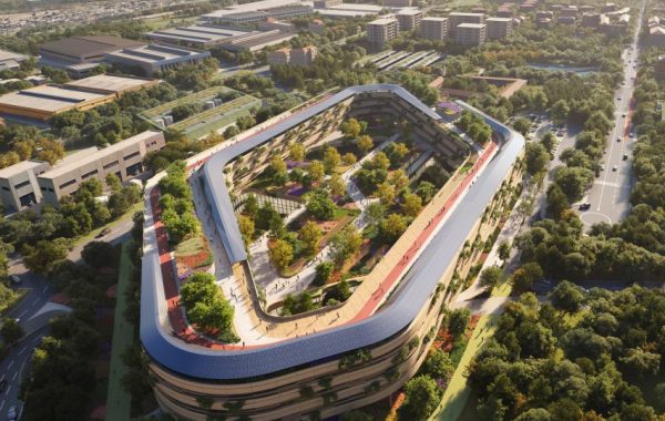 Un puente interno conecta las alas norte y sur. Desde este punto de vista, el techo verde sobre la entrada se convierte en un elemento visual destacado. El puente mejora la sensación de movimiento y conexión en toda la casa.