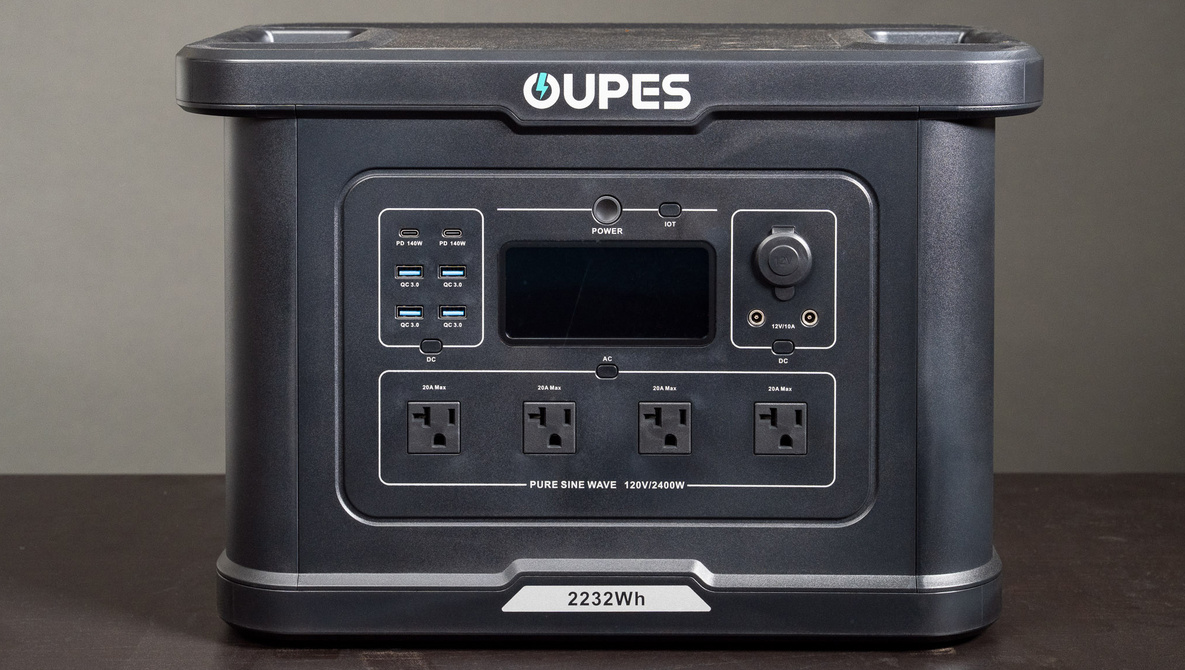 La unidad OUPES tiene una potencia nominal de 2400 vatios a través de un inversor de onda sinusoidal pura. Eso es suficiente para manejar electrodomésticos que consumen mucha energía, como luces continuas de alto rendimiento y múltiples electrodomésticos al mismo tiempo, con cada tomacorriente en el frente clasificado para un máximo de 20 amperios. Para momentos de alta demanda, puede manejar hasta 2600 vatios de potencia en modo boost, así como 4500 vatios de potencia de sobretensión.