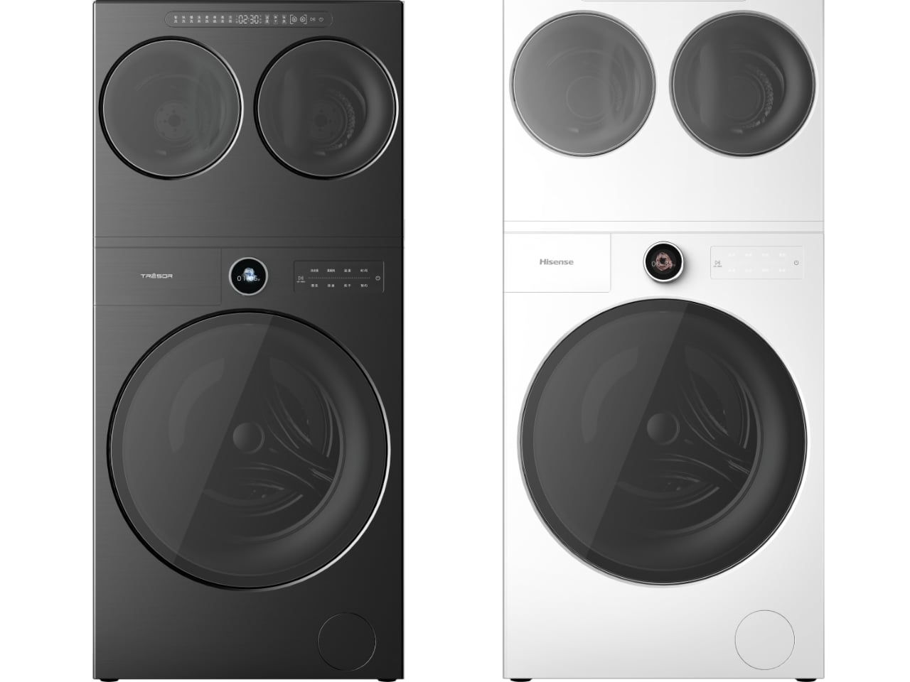 Tres productos de lavandería resuelven tres lógicas espaciales diferentes. La lavadora y secadora inteligentes U7 apunta directamente a las expectativas de capacidad de EE. UU. Los modelos anteriores de Hisense eran demasiado pequeños para las cargas de los hogares estadounidenses. El U7 tiene dimensiones de tambor revisadas, integración adicional de Connect Life, esterilización por vapor y un sistema de detergente Hi-Bubble que reduce el desperdicio.