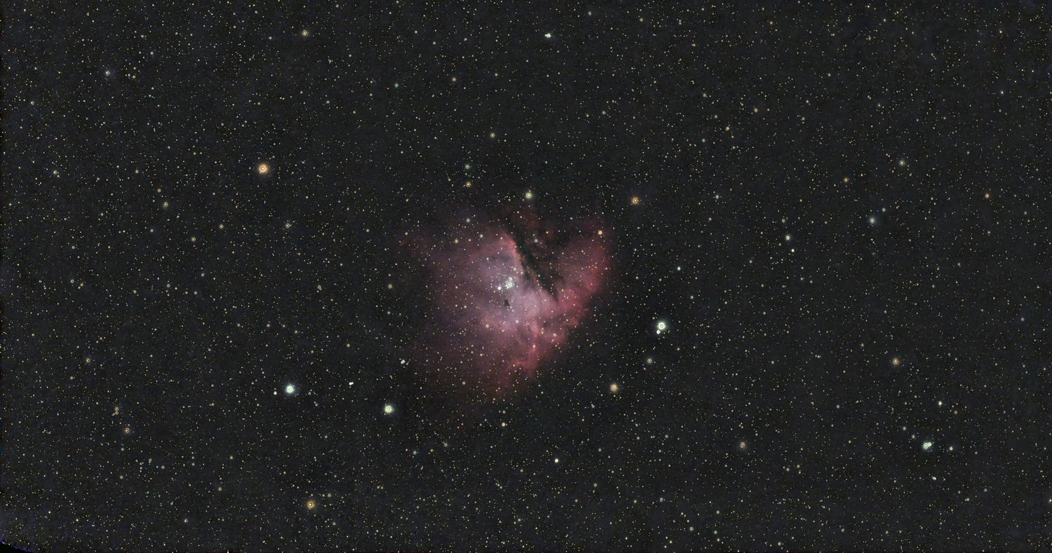 Como funcionó tan bien, seguí mirando la nebulosa Pac-Man antes mencionada, que es mucho más tenue que la galaxia de Andrómeda, y nuevamente me gustaron los resultados. Esta es una exposición de una hora usando el filtro Nebulosa.