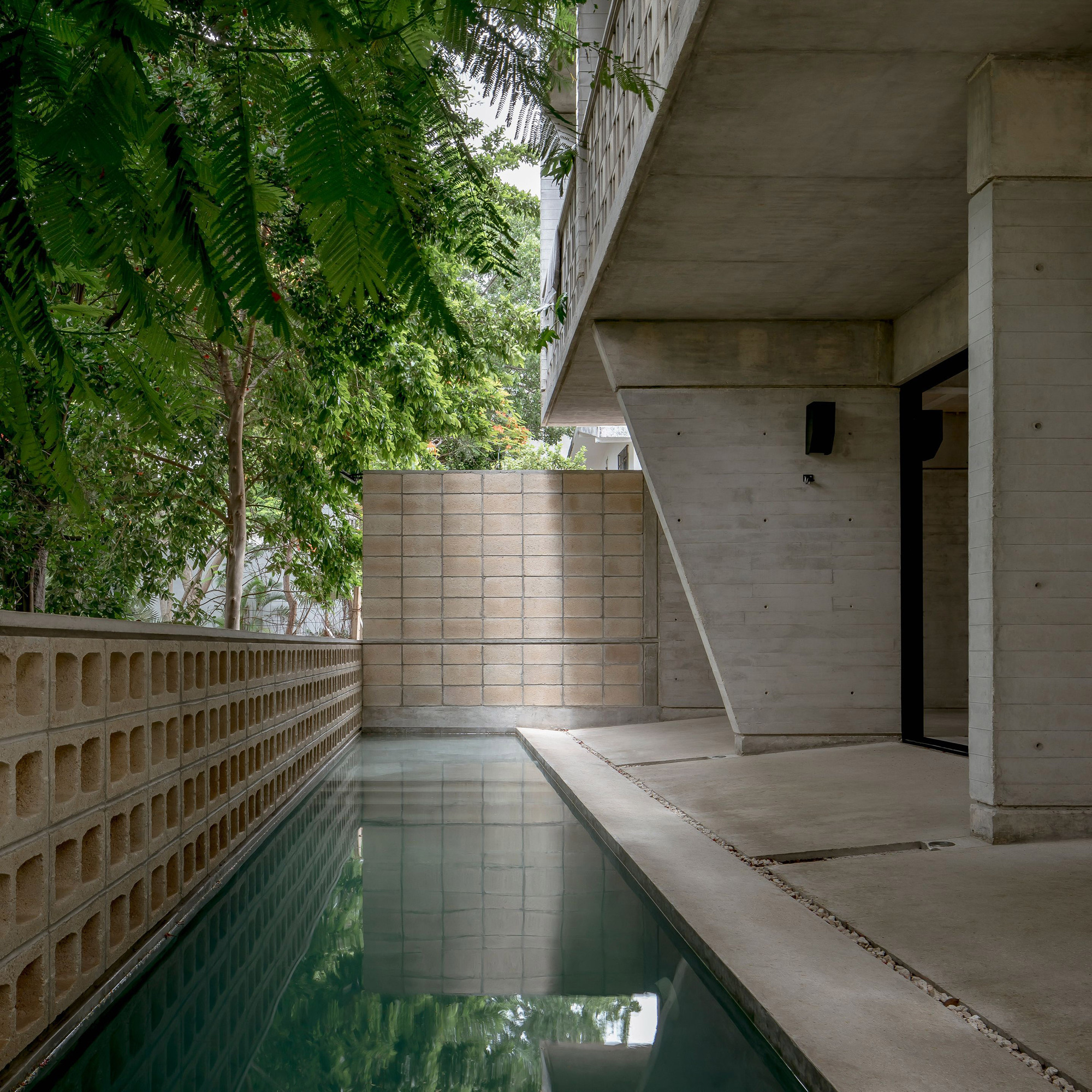 Construidos con materiales de bajo costo y artesanía, los apartamentos se benefician de luz natural, ventilación cruzada y balcones que actúan como una extensión de la casa al tiempo que brindan protección contra el sol y la lluvia. Piscinas, zonas comerciales y terrazas permiten a los residentes interactuar entre sí sin perder privacidad ni independencia. Huachinango 36 es una oportunidad para proponer un plan replicable para aumentar la densidad urbana.