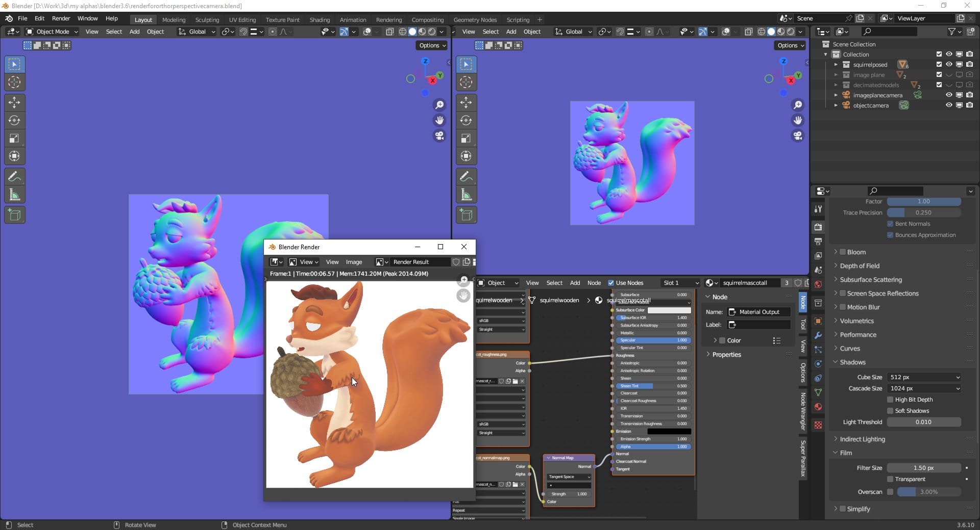 También lo probé con un mapa normal de ardilla que hice hace un tiempo. Algo así como un efecto Han Solo atrapado. Creo que la idea de usar mapas normales en un programa es crear efectos combinados interesantes con otros modelos 3D, en lugar de usarlos individualmente.