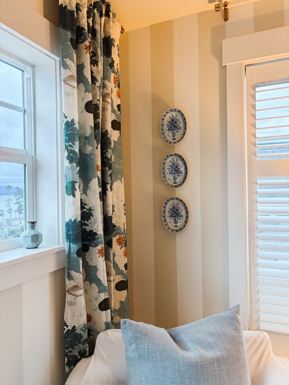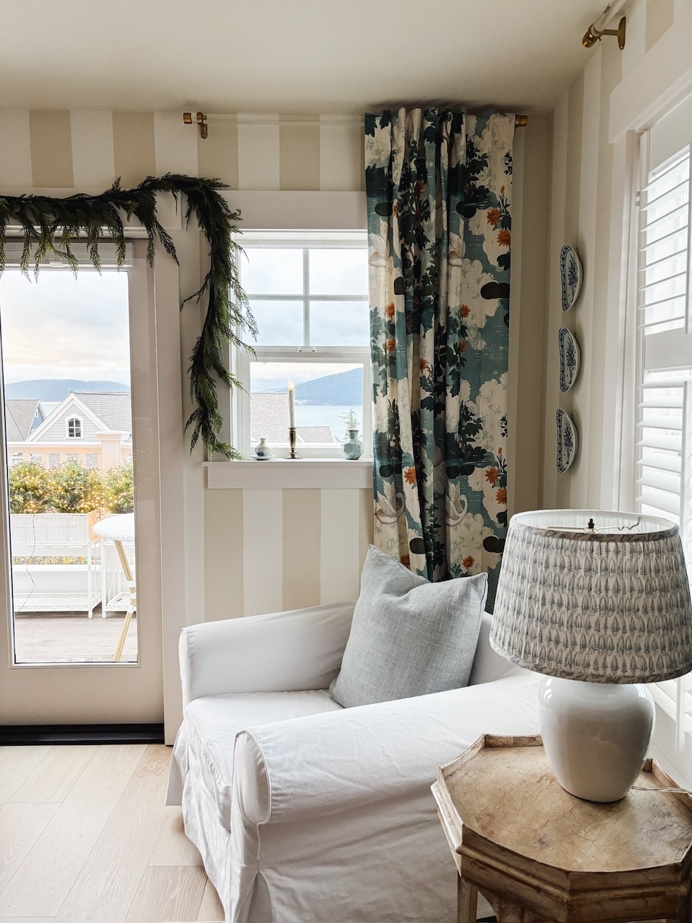 Durante las últimas semanas hemos estado ocupados pintando rayas (¡que se ha convertido en uno de nuestros patrones clásicos característicos en varios de nuestros hogares a lo largo de los años!), intercambiando muebles de una habitación a otra y colgándolos. cortinas nuevas.