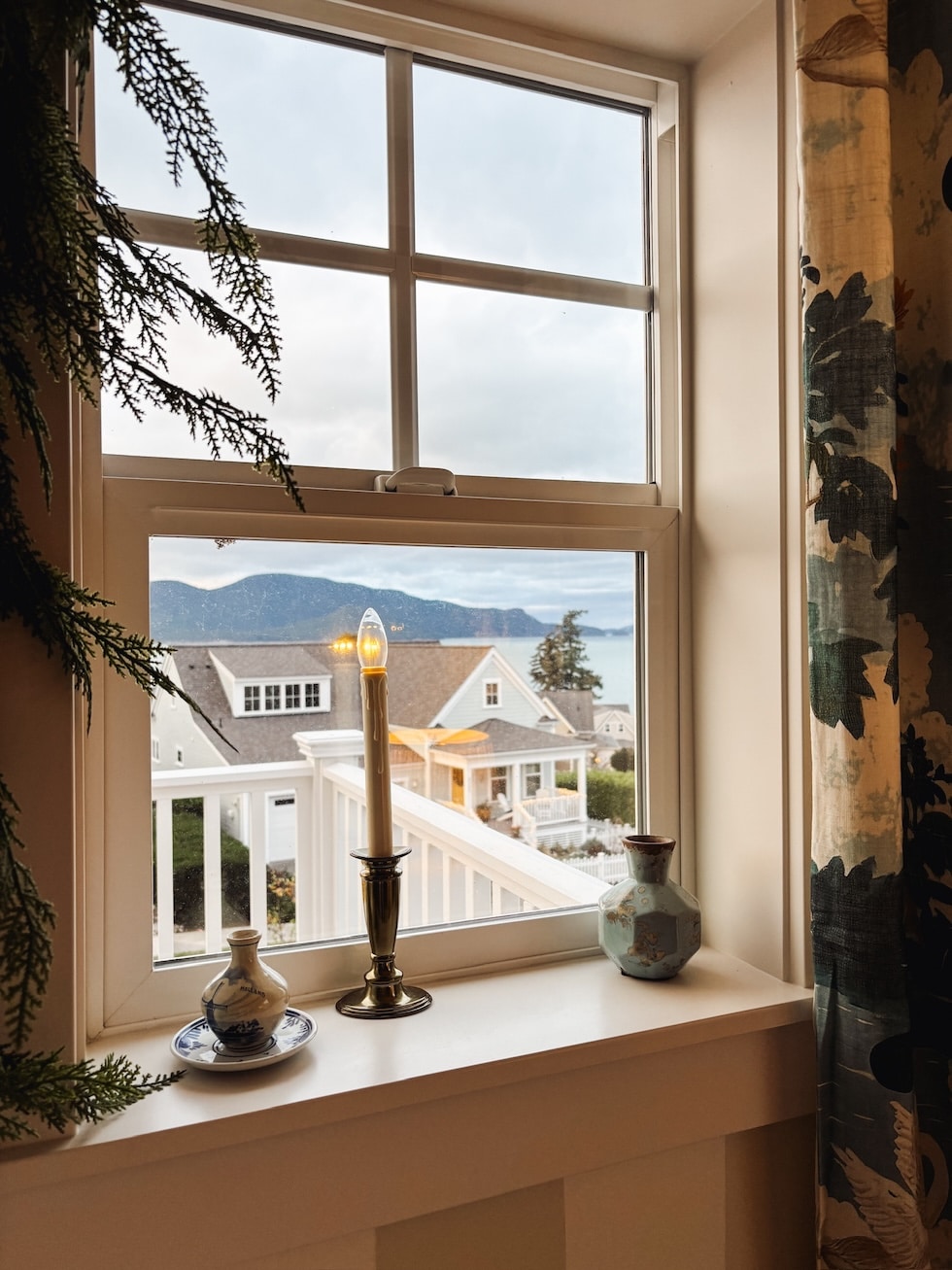 Nos encanta la comodidad ahora, especialmente de noche con las luces encendidas. vela de ventana Brilla antes del anochecer.