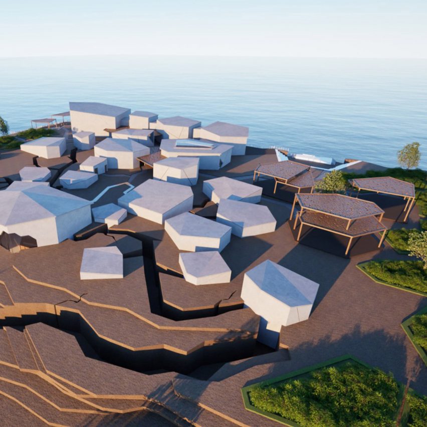“El concepto arquitectónico surge de rocas entrelazadas con raíces de árboles, que simbolizan la resiliencia, la unidad y la conexión inseparable entre lo que está bajo tierra y lo que está sobre la tierra.