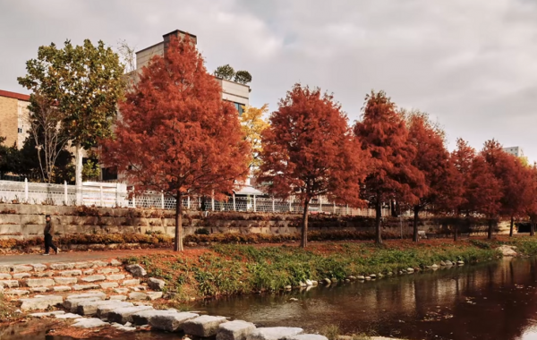 “Entre lo antiguo y lo nuevo hay un lugar donde se unen las dos partes, una terraza de madera rodeada de árboles. Esta terraza también conecta en altura las casas antiguas y nuevas”.