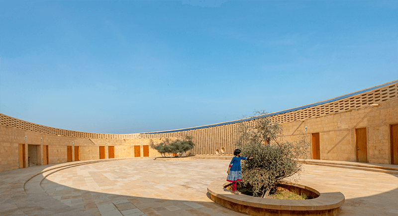 Arquitectura regenerativa en el desierto de Thar: una escuela que garantiza educación gratuita y confort térmico natural a 400 niñas