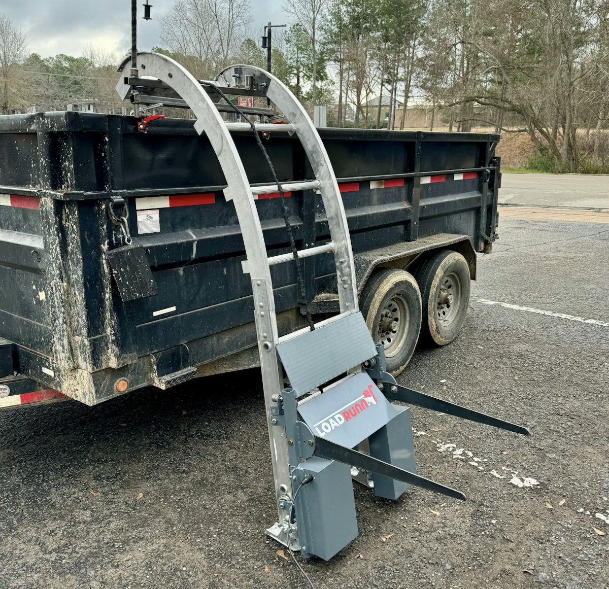 Este riel eléctrico ajustable se puede conectar a cualquier contenedor de basura o remolque volcador y usarse para levantar carros llenos de desechos del lugar de trabajo. La carretilla del contratista está equipada con soportes en ambos lados, que luego se montan en los brazos del LoadRunner para poder levantarlo.