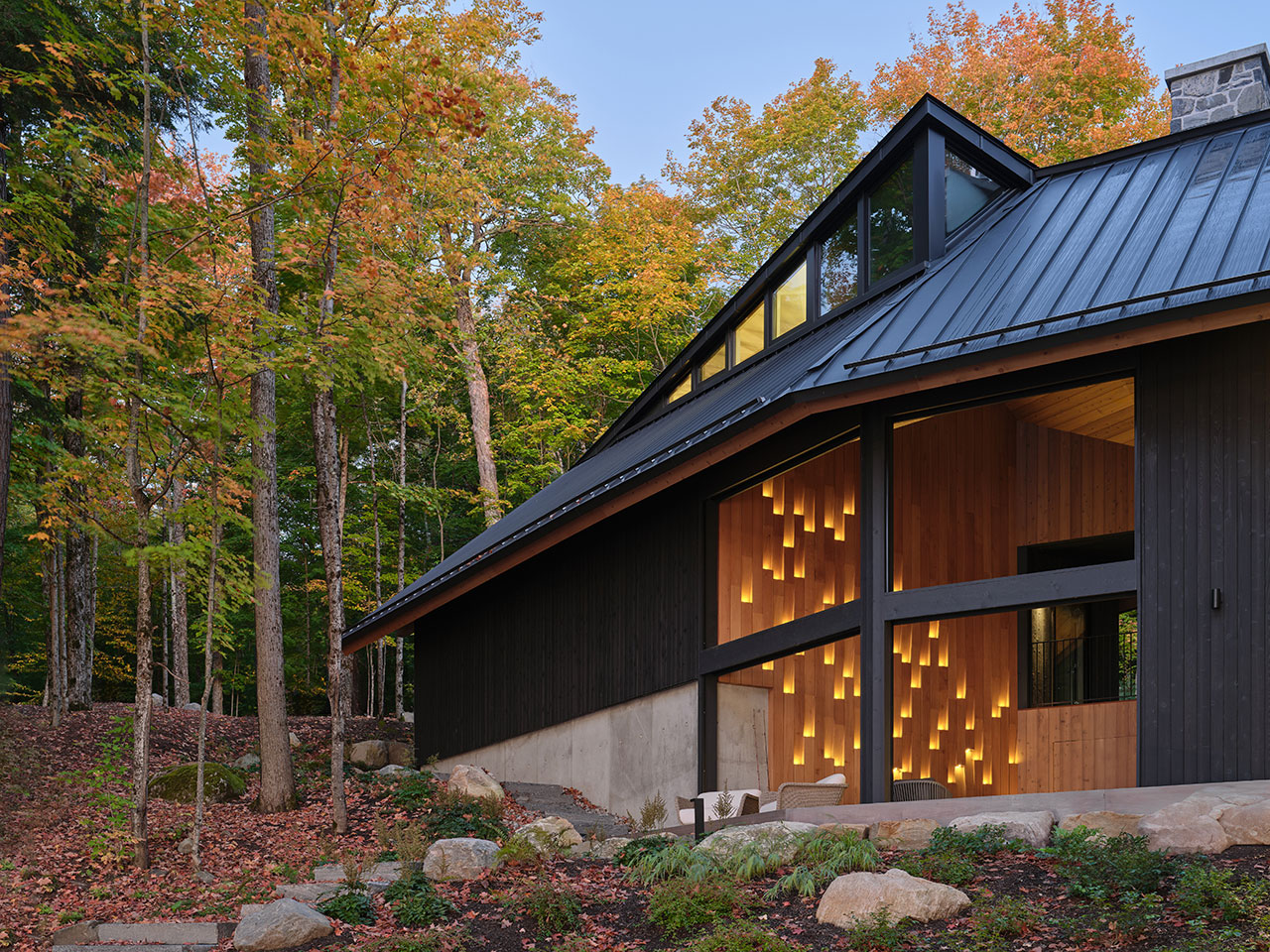 La última casa de vacaciones en Muskoka del arquitecto Barbora Vokac Taylor gana el primer lugar con un diseño que está profundamente arraigado en su entorno mientras mira cuidadosamente hacia el futuro. En lugar de imponerse a la sorprendente topografía del Escudo Canadiense, la cabaña se funde con ella, creando una serie de espacios cálidos y rodeados de árboles que se transforman de espacios lúdicos a tranquilos en tres pisos. Con su exterior Shou Sugi Ban, la Sala Muskoka al aire libre y su diseño organizado en torno a una vida multigeneracional, la casa refleja tanto el carácter accidentado del sitio como los rituales de la vida familiar.