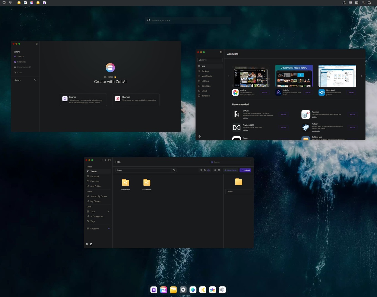 ZettOS es donde Zettlab claramente intenta destacarse. El sistema operativo se centra en hacer que la interacción con el NAS sea accesible al mismo tiempo que incorpora capacidades nativas de IA que van más allá de la indexación básica de archivos. Mi unidad de revisión estaba ejecutando firmware alfa y siempre es complicado juzgar el software sin terminar, pero la experiencia fue más positiva de lo que esperaba.