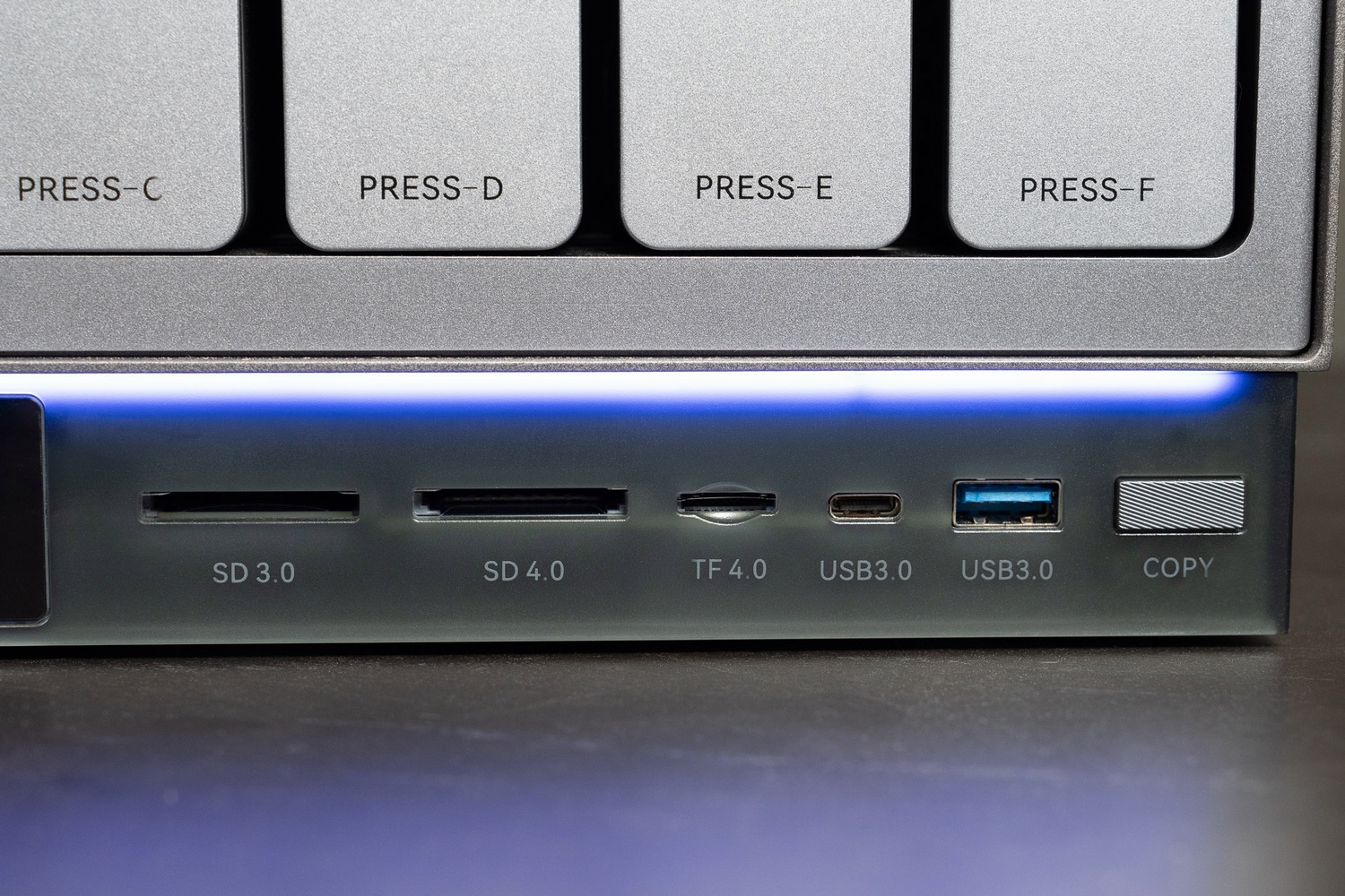 La tira de luz RGB integrada es totalmente controlable. Puede apagarlo por completo o configurar algunas configuraciones de bajo perfil para darle al dispositivo una sensación más premium que el típico estuche NAS anónimo, lo cual sería fantástico si estuviera sobre un escritorio o centro multimedia.