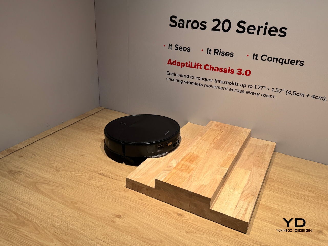AdaptiLift Chassis 3.0, la parte mecánica de la inteligencia, puede levantar y ajustar sus tres ruedas de forma independiente, cruzar umbrales dobles de hasta 8,5 cm de altura, trepar por alfombras de hasta 3 cm de espesor y soltarse si se atasca. Los bordes de los balcones, las alfombras gruesas y las áreas de transición de dos niveles atrapan a los robots más pequeños, convirtiendo el diseño en un terreno manejable. Saros 20 aprende la mejor manera de cruzar cada umbral y lo recuerda, tratando los obstáculos como acertijos con solución en lugar de callejones sin salida.