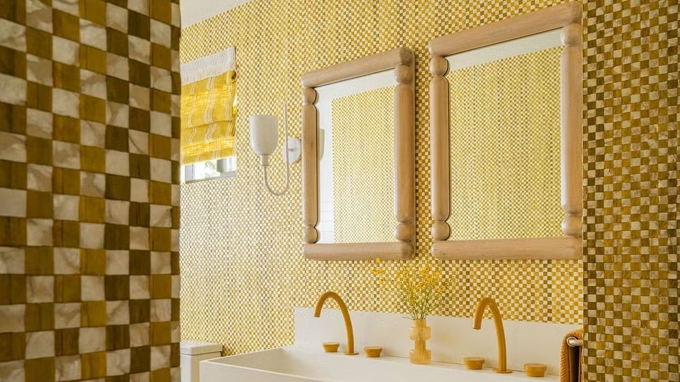 Después de descubrir una tubería en la pared encima de su antiguo lavabo del baño y la falta de hermosos acabados de madera en el mercado, decidió diseñar su propia iteración geométrica con diferentes opciones de montaje, todo en una variedad de materiales de madera maciza. “Cuando lancé, lo hice con 12 perfiles de marco diferentes porque quería darle a la industria del diseño la máxima flexibilidad (y) no quería que tuvieran el mismo aspecto en todos los baños”, dijo. su madera y roble escucho botiquínque refleja el aspecto de los marcos de cuadros antiguos, es uno de sus productos más populares, aunque la gama completa incluye intrincados diseños grabados como escrituras budistas y RedondoGreen lo describe como si tuviera “presencia pero no demasiado ruido” en productos textiles o azulejos.