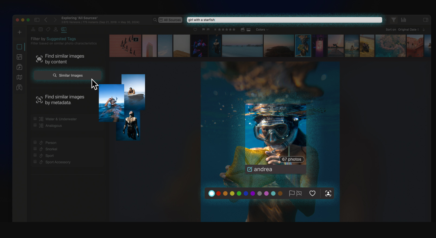 Personalmente he estado usando las primeras versiones de Peakto durante algunos años. Me ha salvado muchas veces cuando buscaba una imagen que conocía pero no encontraba.