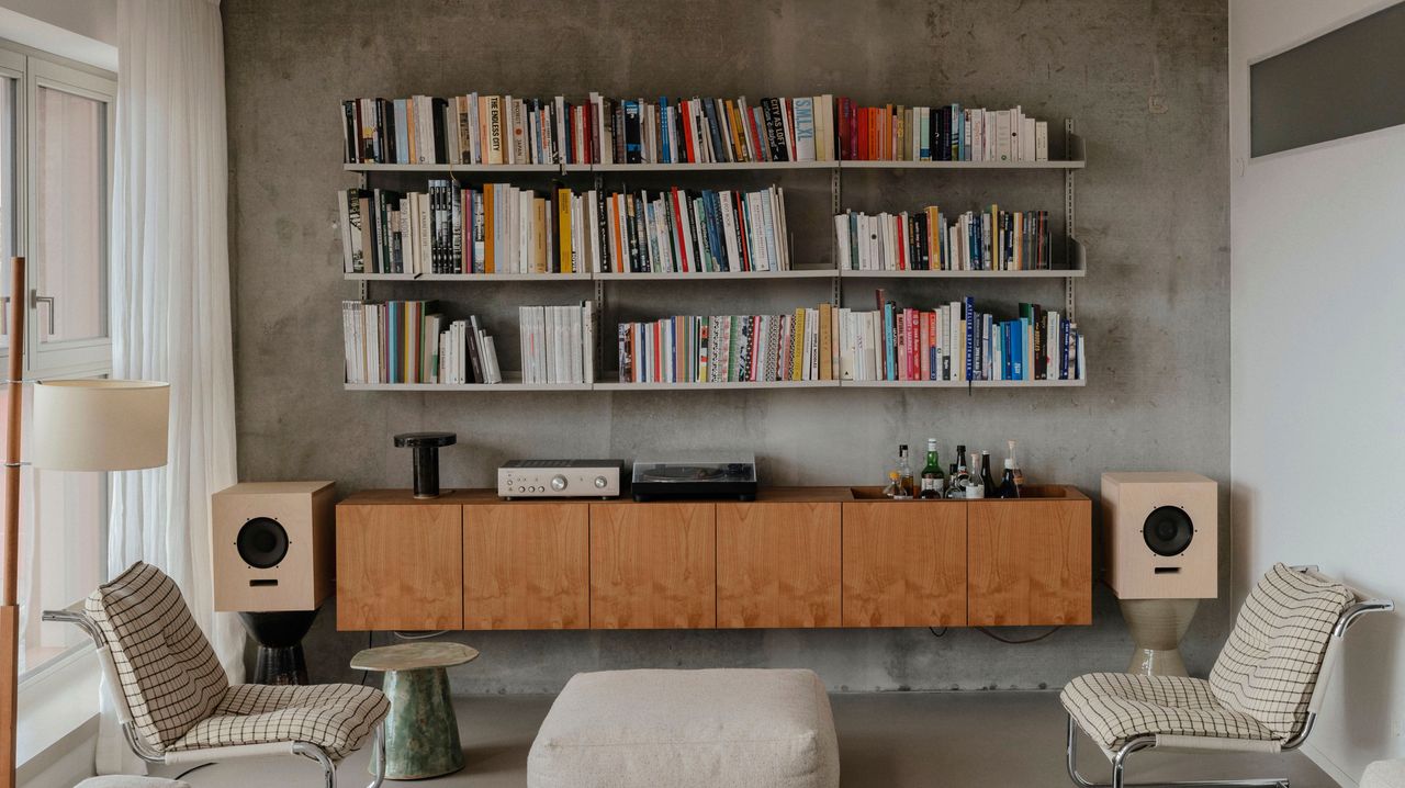 Los sistemas de estanterías Container Store Elfa son famosos por su modularidad y su atractivo duradero. Aunque muchas personas Instalar el suyo en un armario.yo uso personal paréntesis y Estantes Crear un flotante Estantes mi sistema de libros. Medí el espacio de la pared donde quería colgar los estantes y seleccioné piezas de tamaño adecuado a mis necesidades, aunque había muchas opciones. El sistema fue muy fácil de configurar y me permite colocar toda mi colección de libros en mi cama. (Probablemente haya más de 200 libras colgando en el espacio vacío sobre mi cabeza. Da miedo, ¡pero el sistema es muy fuerte!)