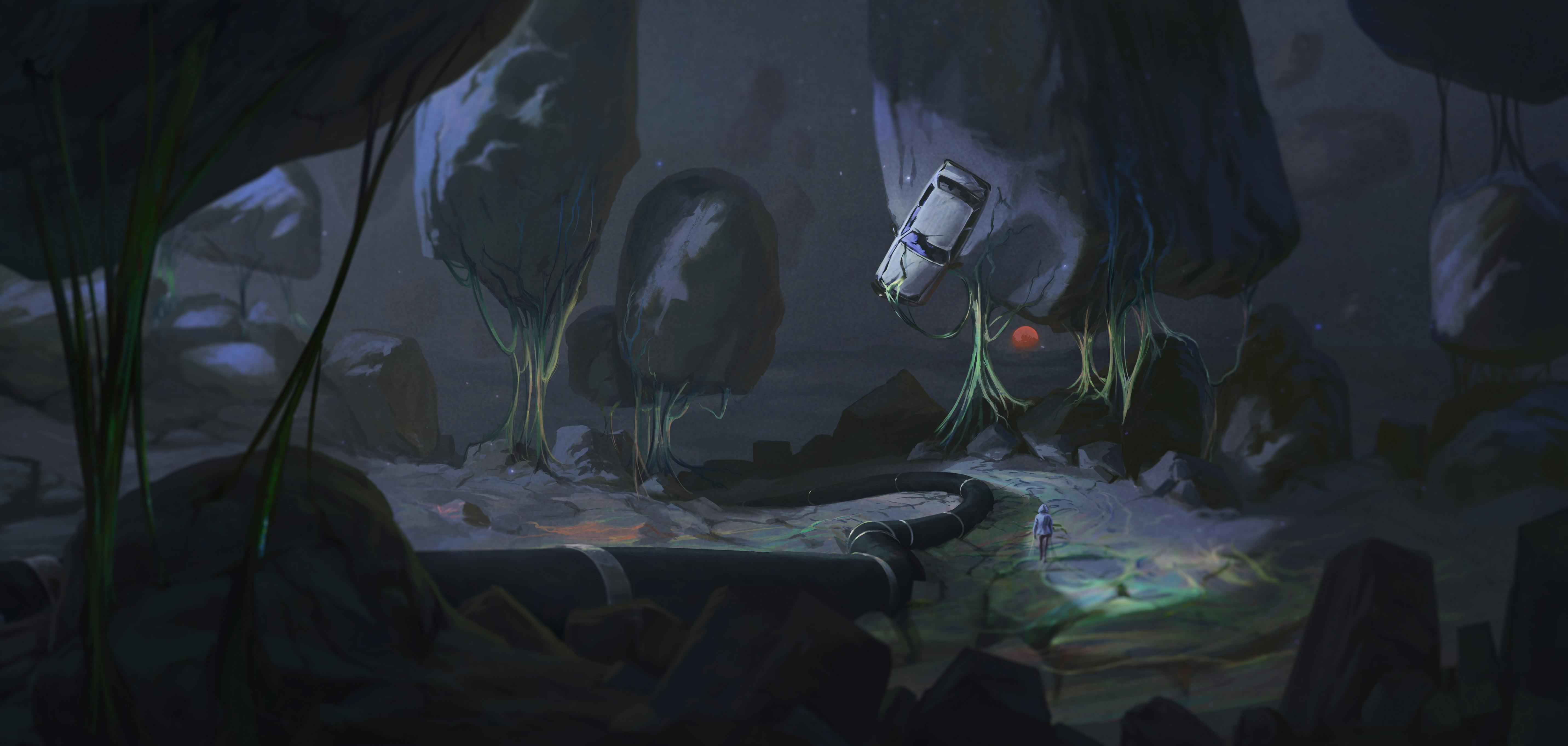 El sistema tubular mecánico subterráneo funciona mal y su energía se vuelve inestable; cuando sale a la superficie, se mezcla con la vida local y descubre restos del viejo mundo. Visualmente, esto se manifiesta como áreas “en blanco”: áreas fantasmales donde la señal es débil pero presente, donde las leyes de la física parecen suspendidas en lugar de eliminadas. Este vacío es una manifestación superficial del cisma mismo, causado por la atracción de la vida hacia su núcleo, dejando un vacío palpable llenado por la muerte y la ausencia de las leyes de la vida.